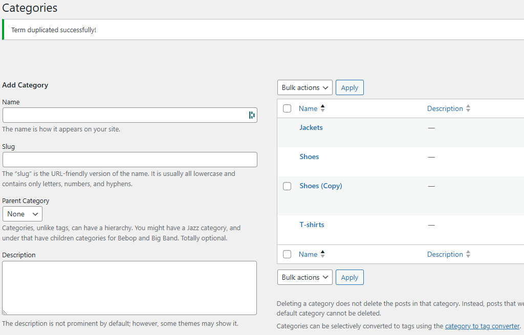 - Complete Meta Data Copy: All term meta data is automatically copied to the duplicate